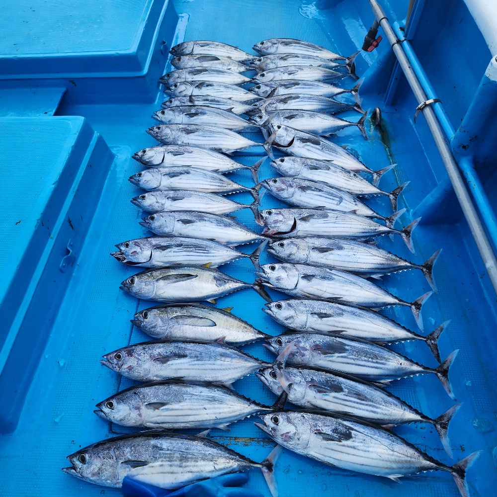 パヤオ便🚢朝イチからカツオの活性良くヒット🎣✨️デカイのも跳ねてましたが当たらなかったです🐟カツオは全員安打で楽しめて良かったです👏反応もけっこうありましたのでまだまだパヤオ楽しみですよ✨️本日は遠方より甚盛丸に初乗船して頂きありがとうございました🙇パヤオ便もまだまだチャレンジお待ちしてます🎣予約状況はホームページをご覧下さい📲#パヤオ便#パヤオジギング#キハダマグロ#メバチマグロ#志摩沖#浜島甚盛丸 #甚盛丸#初心者歓迎#カツオ#伊勢志摩#パヤオ