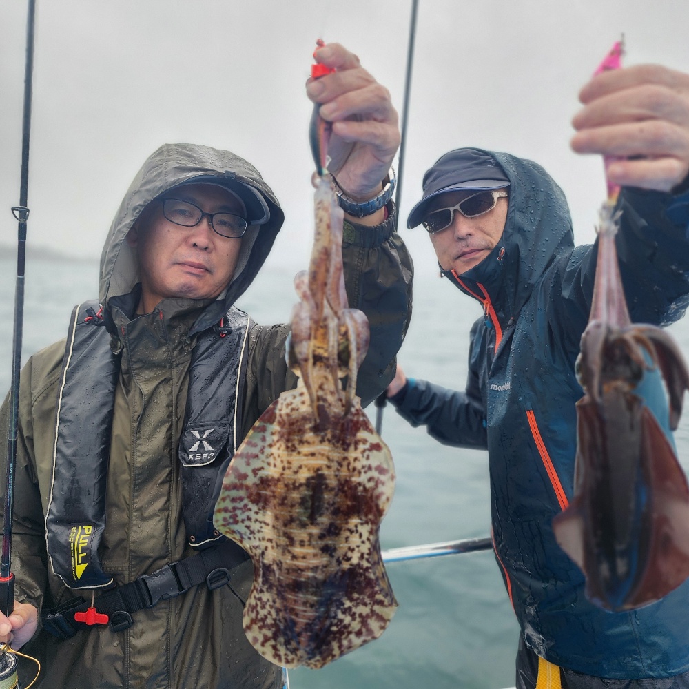 ティップラン便🦑全員安打で良かったです👏雨の中頑張って頂きました☔️💪本日は遠方より甚盛丸に初乗船して頂きありがとうございました🙇#ティップラン#伊勢志摩#英虞湾#アオリイカ#浜島甚盛丸#甚盛丸#初心者歓迎#志摩沖#ナイトティップランが出来る船